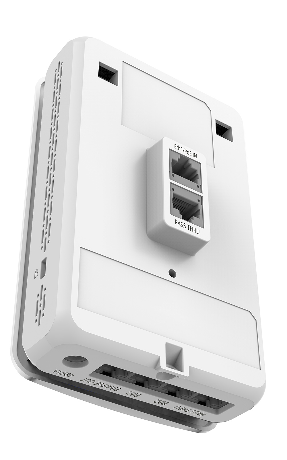 cnPilot™ e430W Indoor è il punto di accesso interno di classe enterprise di Cambium Networks, ideale per hotel e resort. Il prodotto supporta gli standard 802.11 Wave 2, dispone di 4 porte LAN 10/100/1000BaseTX e di una velocità di trasmissione wireless massima di 130 Mb/s. Il punto di accesso presentato è progettato per il montaggio a parete.